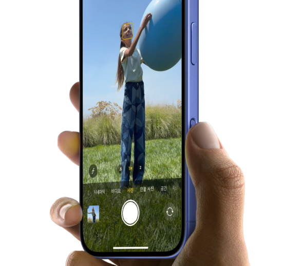 아이폰16의 카메라 컨트롤 버튼을 통해 노출 보정, 촬영 모드 전환 등 다양한 기능을 빠르게 제어할 수 있습니다.