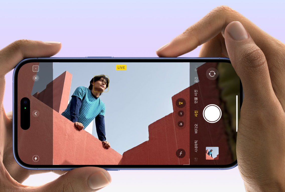 아이폰16은 라이브 포토, 연사 사진, 퀵 테이크 등 다양한 모드를 지원합니다.