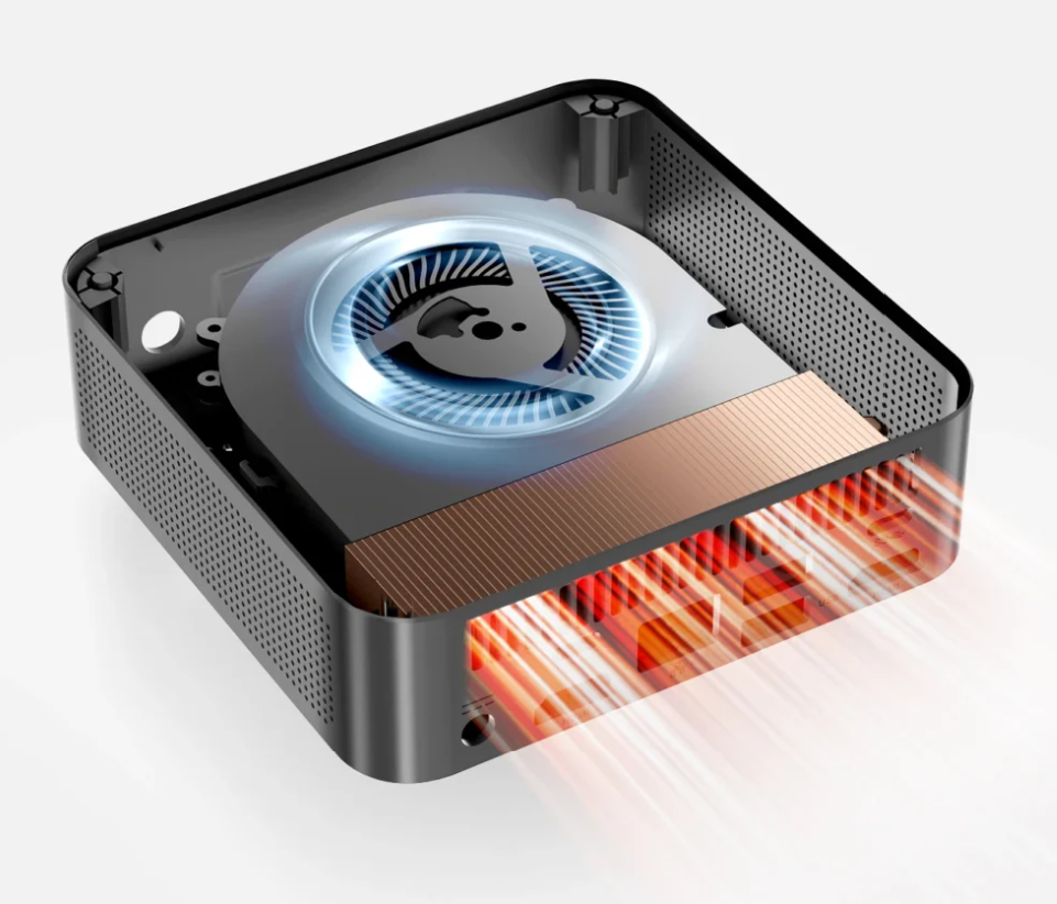Chatreey T9은 양쪽 측면과 후면에 통풍구가 넉넉하게 배치되어 있고, 내부에 쿨링 팬도 탑재되어 있어 발열 제어는 어느 정도 안정적입니다.
