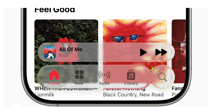 리퀴드 글래스 디자인은 마치 유리가 부드럽게 흘러내리는 듯한 느낌으로 화면을 자연스럽게 연결하며, 사용자에게 몰입감 높은 경험을 제공합니다. 이 디자인은 애플이 사용자와의 상호작용을 얼마나 중요하게 여기는지를 잘 나타냅니다.