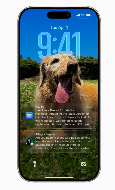 - 잠금 화면은 사진이 3D 효과로 부드럽게 움직이고, 알림이 유기적으로 배치되어 자연스러운 흐름을 보여줍니다.