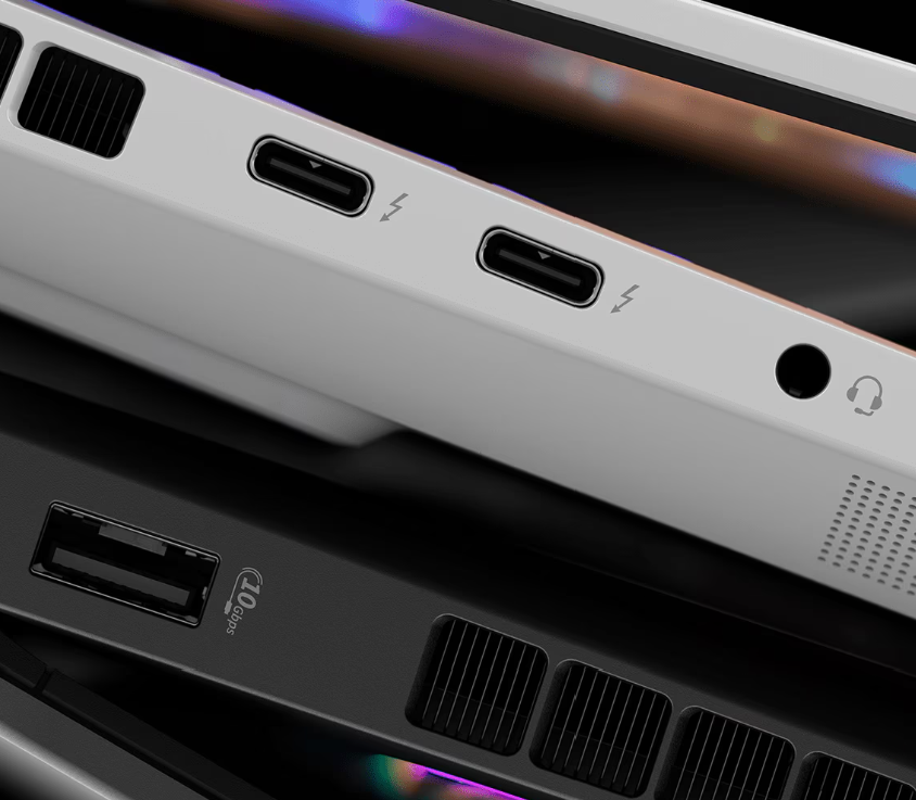 입출력 단자도 풍성합니다. 썬더볼트 4 단자, HDMI 포트, 특히 2.5Gbps 랜포트와 와이파이 7 지원은 헤비 VR 유저들에게 최적의 환경을 제공합니다.