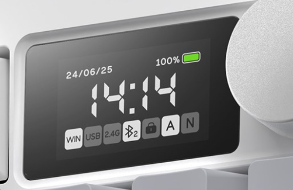 - 디자인: 화이트 베이스에 레트로한 회색 키캡 구성, 원형 디스플레이와 노브가 포인트
