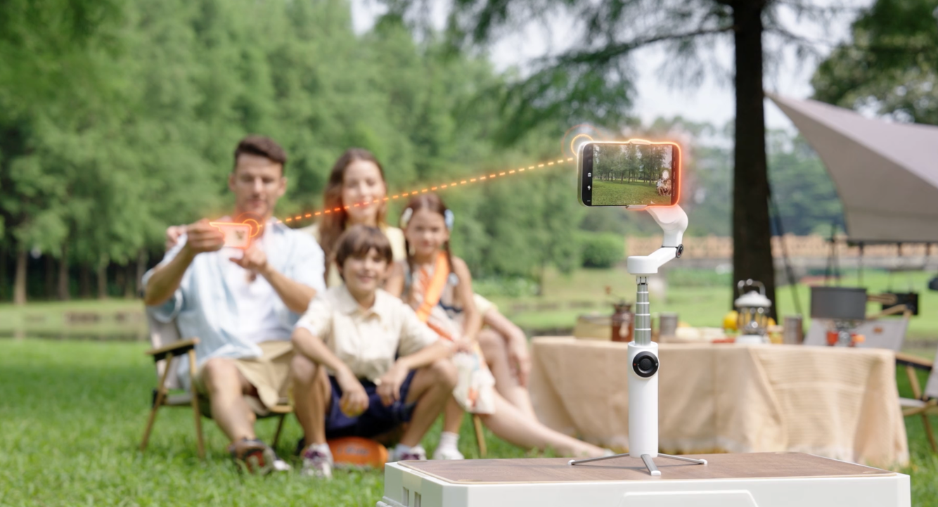 셀카나 단체샷 촬영 중 사람들이 하나둘 프레임에 들어오면 보통 트래킹이 깨지기 쉬운데요, Flow 2는 다인원 트래킹으로 상황에 맞춰 자동으로 앵글을 조정합니다. 메인 피사체를 지정할 수도 있어 중간에 인원이 바뀌어도 별도 조작 없이 자연스럽게 촬영이 이어집니다.