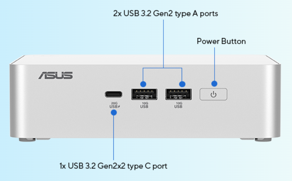 - 전면 USB-C(20Gbps) + USB-A 2개