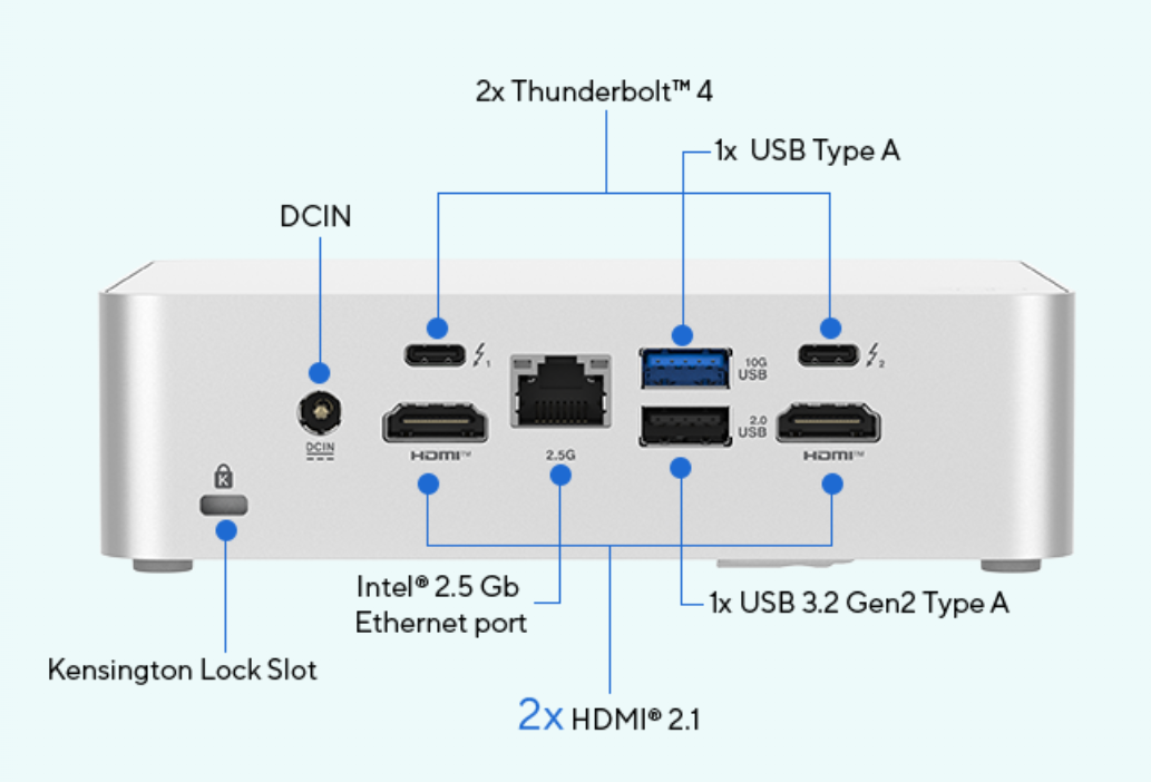 작은 크기에도 불구하고 디스플레이 4대 동시 출력, 썬더볼트 4 포트 2개, HDMI 2.1 2개, 총 6개의 USB 포트를 제공해 게이밍, 영상 편집, 서버, 업무 등 다양한 환경에서 활용이 가능합니다.