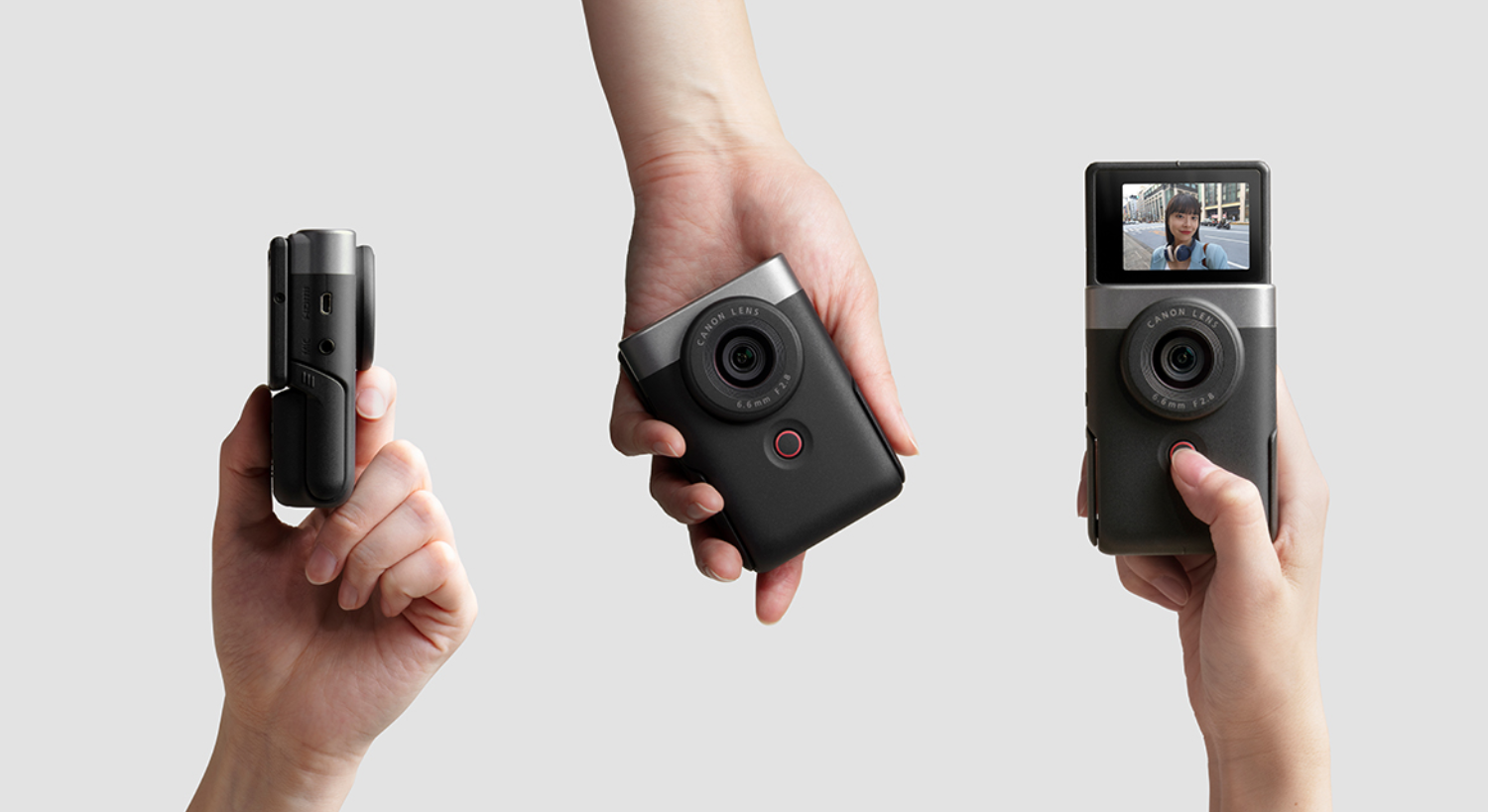 캐논 파워샷 V10은 전체적으로 둥글고 매끈한 "리퀴드 글래스(Liquid Glass)" 디자인을 채택하고 있습니다. 이는 유리처럼 반짝이며 매끄럽게 이어지는 표면 마감 방식으로, 실제 손에 쥐었을 때 유려한 곡선과 부드러운 촉감이 인상적입니다. 실버와 블랙 톤으로 출시된 V10은 미니멀하면서도 고급스러운 외관을 자랑하며, 크리에이터가 카메라를 손에 쥐고 다닐 때도 패션 소품처럼 보일 정도로 감각적인 외형을 갖추고 있습니다.