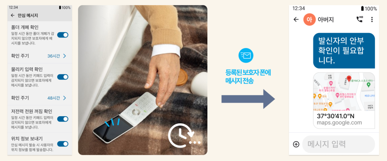 - 안심 메시지: 일정 시간 사용이 없으면 보호자에게 알림을 보내는 기능을 지원합니다.