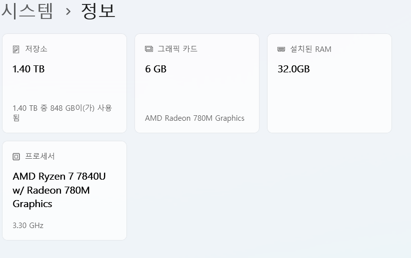 간편하게 CPU와 RAM만 확인하려면 설정 → 시스템 정보이 좋고, 그래픽/사운드까지 포함되면 dxdiag가 유용합니다. 전체를