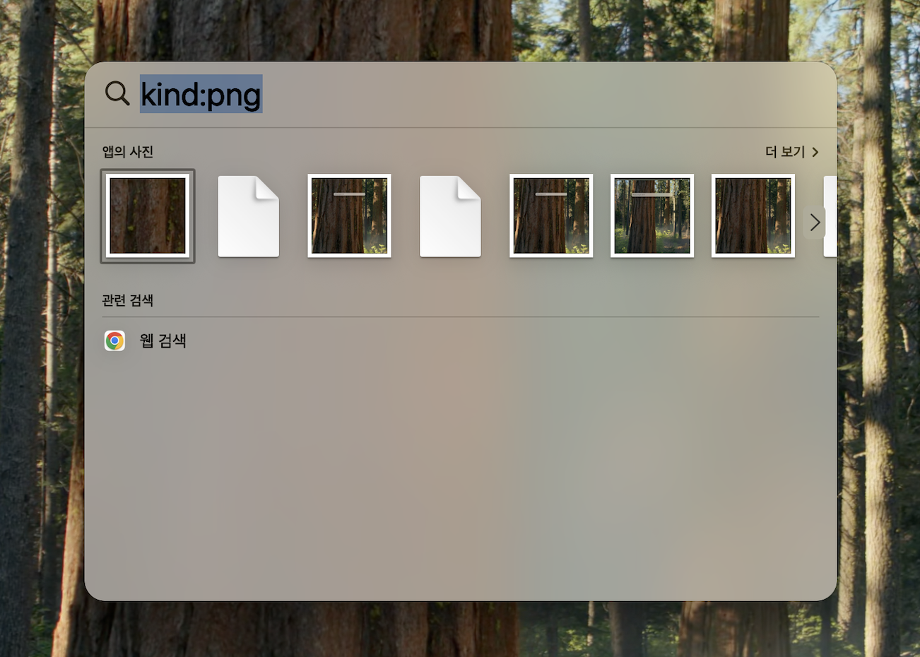 kind:png 또는 종류:png라고 입력하면 PNG 파일만 필터링됩니다. (ex: kind:png) - 날짜별 검색: